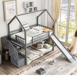 Twin Over Twin Bunk Bed with Convertible Slide and and Storage Staircase,Storage Staircase can be Placed Left or Right,Wood House Bunk Bed Frame for K$200Auburn, WA