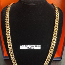 18K Gold Cuban Link Necklace 22β 9mm 50.7grms 3816 Steilacoom blvd Lakewood WA Crown Jewelry $9,125Tacoma, WA