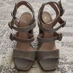 New Prezioso metallic block-heel sandals with multiple buckle straps Size 7 $125Kirkland, WA