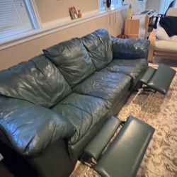 Green leather couch with recliners $1Woodway, WA