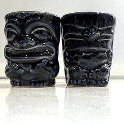 Set of 2 Dark Blue Ceramic Tiki Shot Glasses - 2 diff designs$12Tacoma, WA