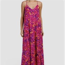 Nicole Miller brand Muted Floral Charmeuse Satin Slip Maxi Dress - Pink - Medium - NWT $35Tacoma, WA