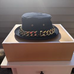 Michael Kors Embellished Denim Bucket Hat features a polished gold-tone chain link detail $40Seattle, WA
