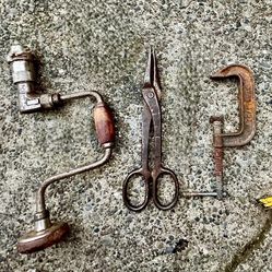 Vintage Hand Tools Lot – Hand Brace, Scissors, Clamp – Old Steel & Patina$35Seattle, WA