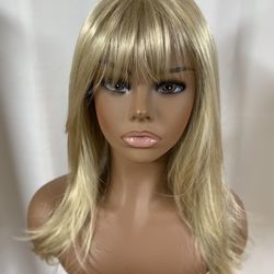 Average Size Synthetic 15” Light Blonde With Golden Highlights Wig With Bangs On A Lace Cap$30Marysville, WA