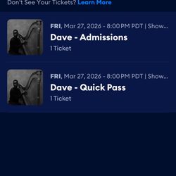 Dave Seattle Ticket and quick Pass $90Renton, WA