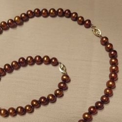 CHOCOLATE FRESHWATER REAL PEARLS WITH 10K CLAPS NECKLACE & BRACELETS SETS $120Bothell, WA