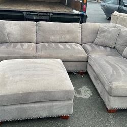 Gray linen sectional couch and ottoman$700Seattle, WA