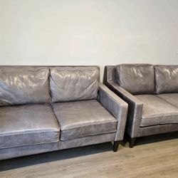 Pair (2) West Elm leather Sofa love seats - 60 Inch - Buttery Soft Gray LEATHER down Filled $599Redmond, WA
