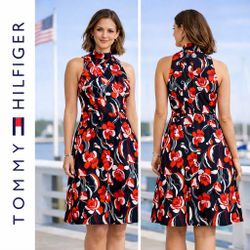 Tommy Hilfiger Floral A-Line Halter Mock-neck midi-dress black-red-white Sz 8$10Redmond, WA