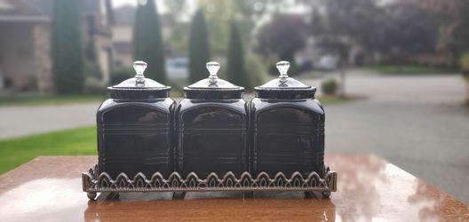 Set of 3 black kitchen cannisters with metal tray$20Edmonds, WA