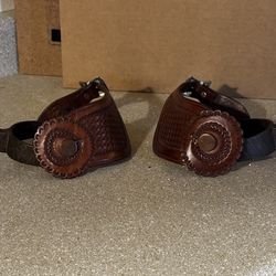 Vintage Cowboy Style Rowel Spurs (pair) Revolving Star Shaped Wheels / Tooled Leather Straps$40Seattle, WA