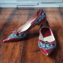 Christian Dior Oblique Canvas Ballet Flats Red Leather Trim Sz EU 35.5 / US 5.5