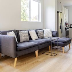 Gray linen sectional couch and ottoman$700Seattle, WA