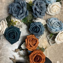4 Boutonnières and 6 corsages Terra color/ burnt orange and ivory and blue hues.$100Seattle, WA