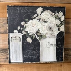 Vtg Kathryn White French Country Textured Canvas in Wood / Black Distressed Frame Approx 19” Square x 1.5” D Textured canvas art by Kathryn White. Ha$22Tacoma, WA