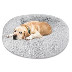 Dog Bed & Cat Bed, Calming Anti-Anxiety Donut Dog Cuddler Bed, Machine Washable Round Pet Bed, Comfy Faux Fur Plush, 30 X 30