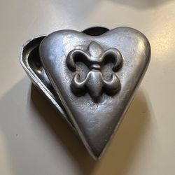 Vintage Heart Pewter Fleurdelis Motif Embossed accent Trinket Jewelry Box$20Covington, WA