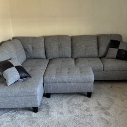 Gray linen sectional couch and ottomany$700Seattle, WA