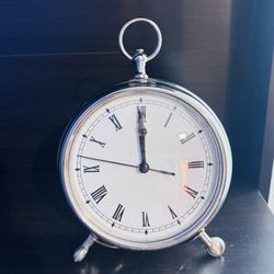 Pottery Barn Pocket Watch Style Desk Clock Silver Finish Roman Numerals ~ Works$55Seatac, WA