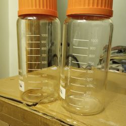2 Glass Laboratory Bottles, 1000ml Wife Mouth Graduated Regent/ Media Storage With GL80 Orange Polypropylene Screw Caps$20Everett, WA