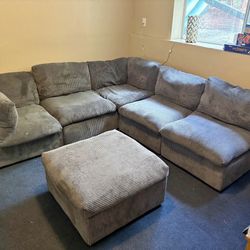 Oversized Gray Corduroy Modular Sectional with Ottoman$650Federal Way, WA