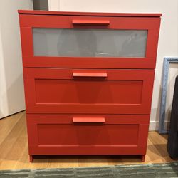 Red Ikea Brimnes 3-Drawer Dresser Chest With Frosted Glass- Great condition$120Seattle, WA
