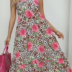 Leopard and rose floral halter maxi dress$12Seattle, WA