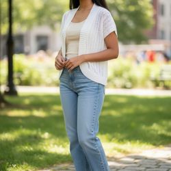 Jessica Howard Cream/White Open-front Cropped Cardigan - Size S - NWT $25Bellevue, WA