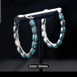 Silver Turquoise Oval Hoop Earrings$38Everett, WA