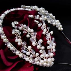 BRIDAL TIARA WITH RHINESTONES & PEARLS WEDDING HAIR ACCESSORIES $30Lynnwood, WA