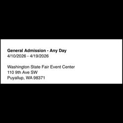 2 Puyallup Fair Entrance Tickets $15Seattle, WA
