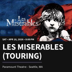 Les Misérables 4/16 (VERY good spot)$240Seattle, WA