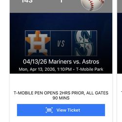 FRONT ROW- Mon 4/13- Houston Astros at Seattle Mariners$140Seattle, WA