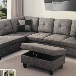 Gray linen sectional couch and ottoman$650Seattle, WA