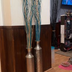 Set of 2 Tall Silver Floor Vases with Decorative Branches (2FT)$25Tacoma, WA