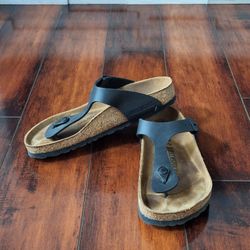 Tory Burch Miller Sandals Black Leather Size 7M Classic Logo Thong Sandals$75Mukilteo, WA