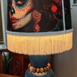 Hand-Restored sugar skull | Day of the Dead Art Lamp | Fringe Shade | Unique Statement Lighting$175Auburn, WA