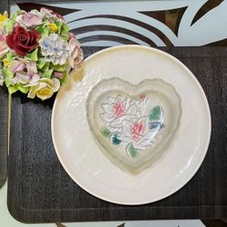 Vintage Mikasa Studio Nova 2pc Embossed Frosted Colored Rose Glass Heart Shaped Bowl (Pick upš In Bellevue)*Check out my Other Posts š$10Bellevue, WA