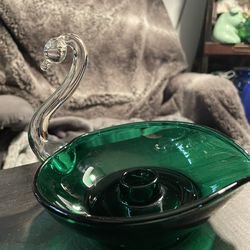 Vintage Emerald Green Glass Swan beautiful rmerald grern and clear Candlestick Holder Duncan Miller$19Seattle, WA