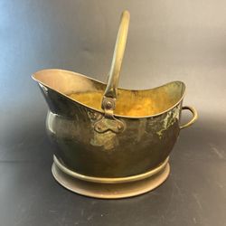 Vtg Large Brass Coal Scuttle Bucket Planter Handle Farmhouse England Rustic 12"$70Snohomish, WA