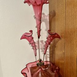 Antique Victorian Cranberry Glass Epergne Centerpiece | 3 Horns | 21” Tall$300Seattle, WA