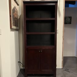 Tall Dark Wood Cabinet with Bookshelf & Storage Doors – Excellent Condition $80Redmond, WA