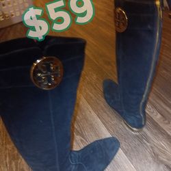 TORY BURCH BLACK SUEDE BACK ZIP GOLD HARDWARE HEELS BOOT$59Tacoma, WA