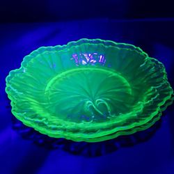 2 Rare Antique Flint Uranium Glass "Leaf Pattern" 8" Plates $22Everett, WA