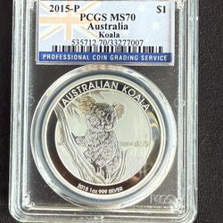 2015-P PCGS MS70 Australia Koala 1oz Silver Coin $70Seattle, WA