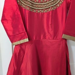 Beautiful Coral color Dress/Gown with Gold Embroidery and matching earrings$45Redmond, WA