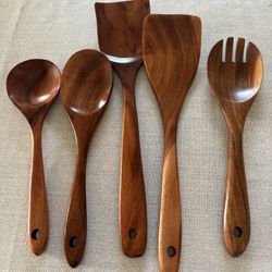 Five natural teak wood kitchen spatulas and spoons$10Tacoma, WA