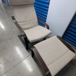 IKEA Poang Ivory Leather Stress Free Lounge Chair with Ottoman$69Seatac, WA