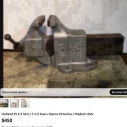 Holland 15 1/2 Vise / 5 1/2 Inch Jaws / Opens 10 Inches / Made in USA Vice$400Covington, WA